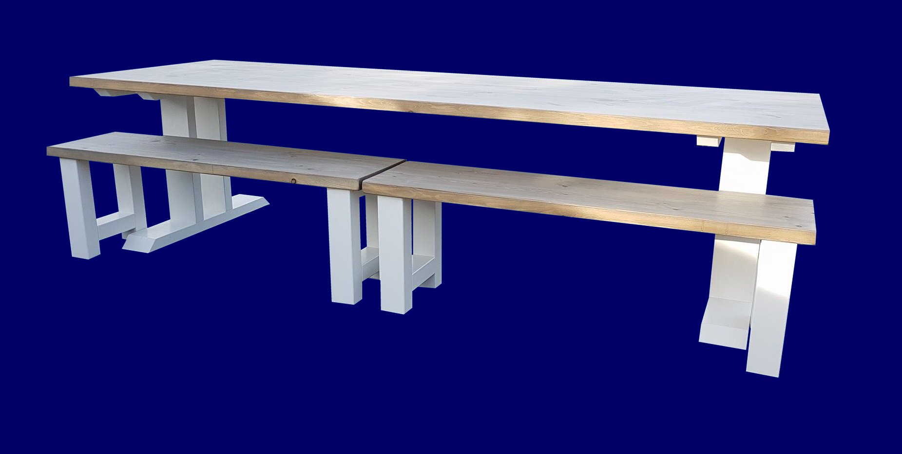 Alle bovenstaande modellen zijn leverbaar tot 3 meter lang en in iedere gewenste kleur, beits of olie bewerkt.